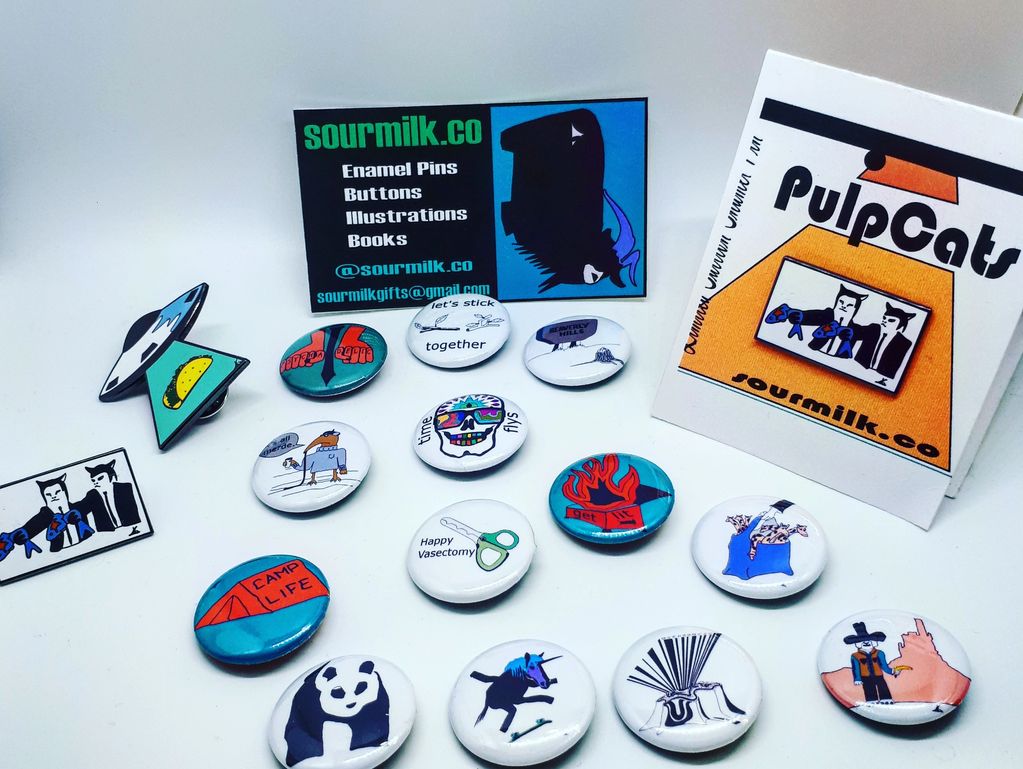 An assortment of high quality, fun buttons and enamel pins. Prices may vary with shipping.